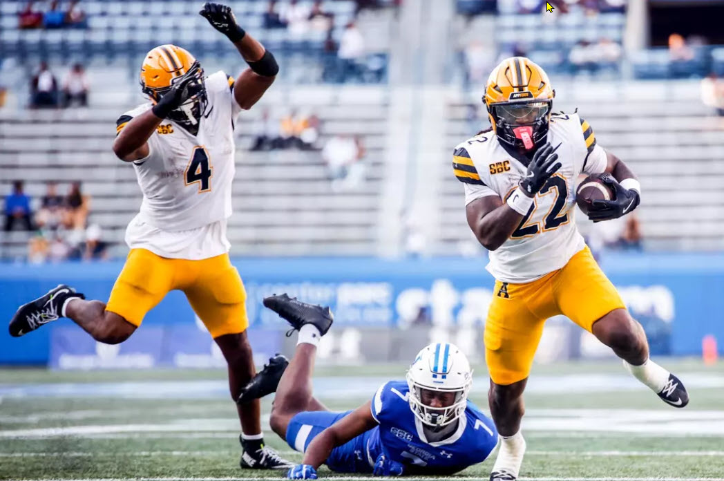 Defensively, App State held the Panthers scoreless until late in the third quarter. It was 31-0 before the Mountaineers’ hosts saw the end zone at the 4:40 mark of Q3 when quarterback Cameran Brown found tight end Grant Hollier for a 15-yard TD. Even though Georgia State manufactured a trio of TD-scoring drives in the third and fourth frames, the Mountaineers always countered with points of their own, never allowing the Panthers to seriously threaten.