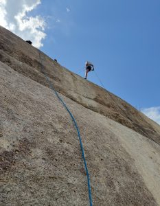 “On the south side, there was a really dense stand of trees. In a lightning storm, you don’t want to be near any trees,” said Blain. Conveniently, on the north side, there were giant boulders. It took us about 30 seconds to leave our packs and go over and down the north side. We helped each other find hiding spots among the boulders and that is where we stayed for about 30 minutes.”
