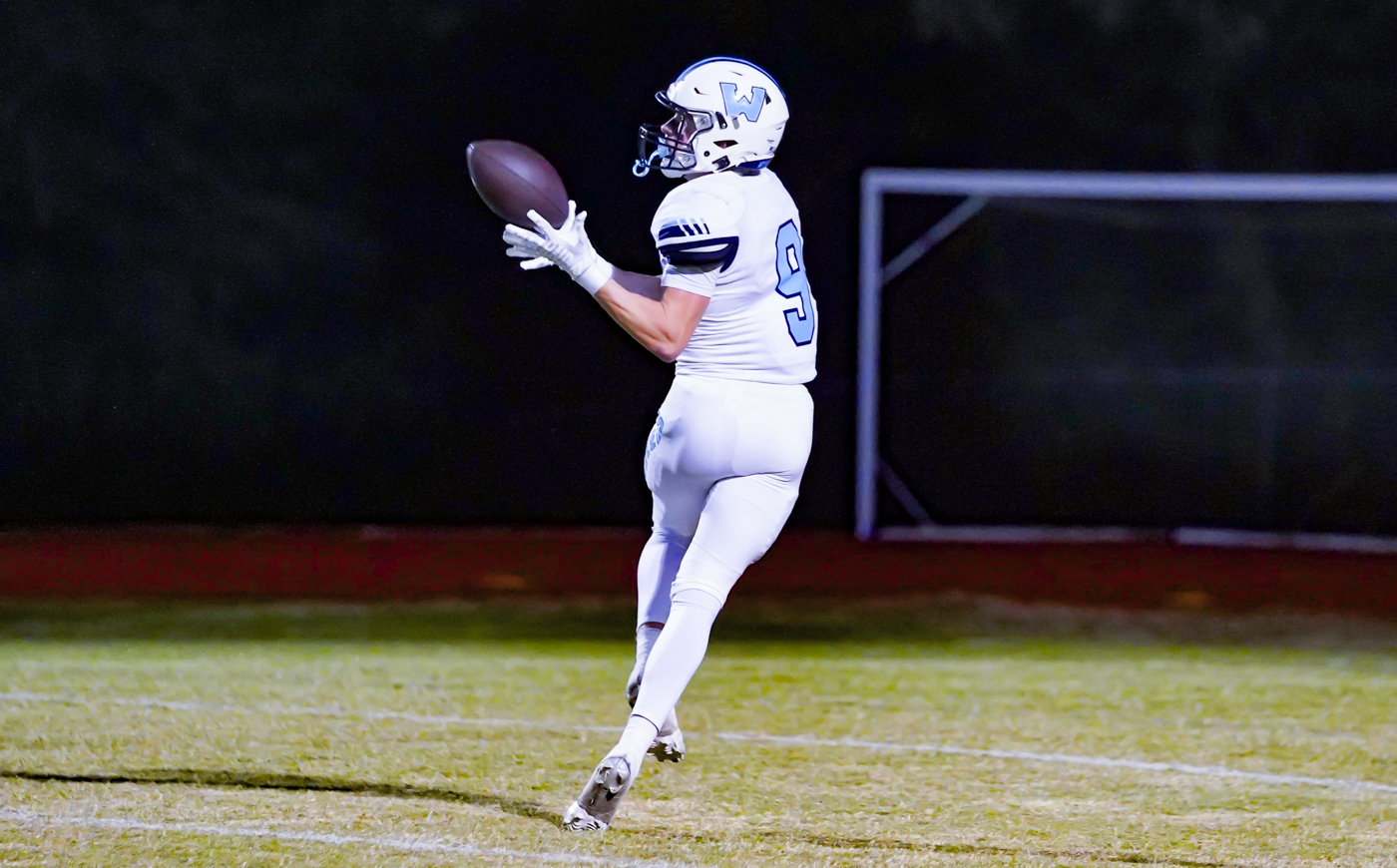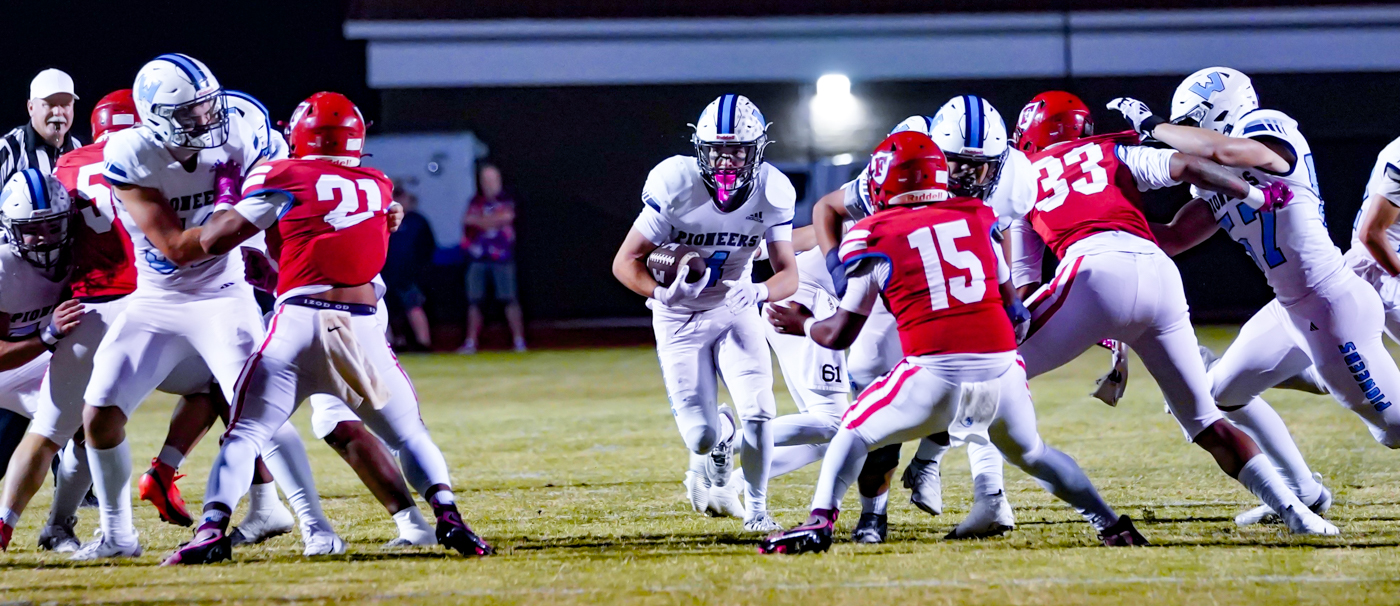 Precision blocking at the line of scrimmage helped running back Everett Gryder and quarterback Cade Keller pick up large chunks of gridiron real estate, getting both Pioneers into the second level where they outraced any Patriot thoughts of defense. Add-in sophomore linebacker John Wilson Mills’ “smash mouth” efforts in leading a stellar Watauga defensive performance and you have all the ingredients for the blowout that it was. The Pioneers were ahead, 21-0, before the buzzer sounded for the end of the first quarter.