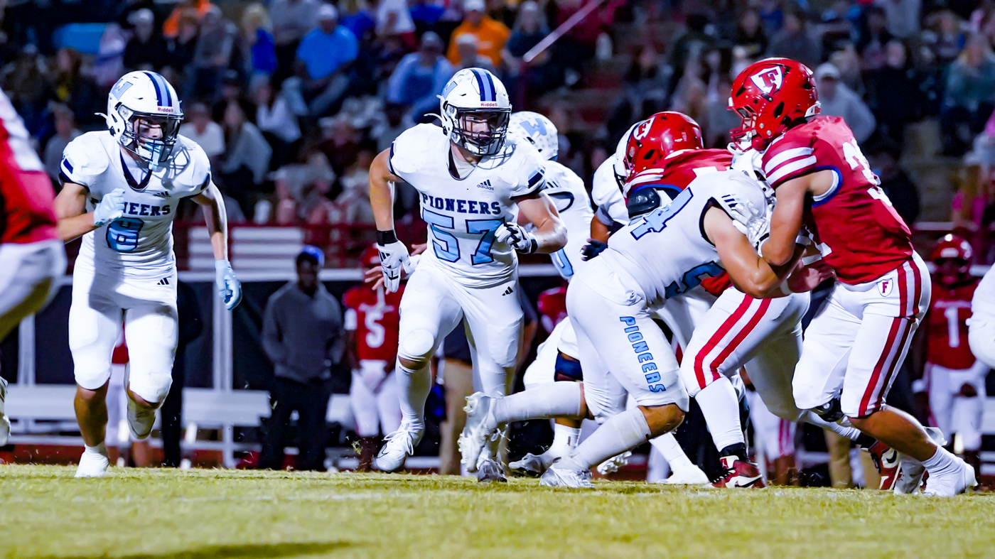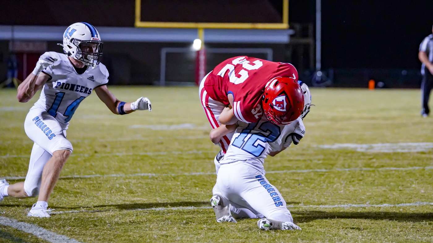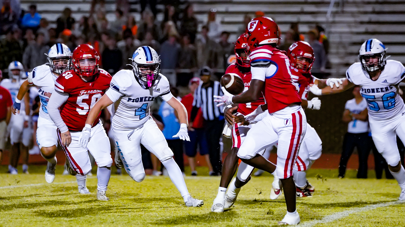 The Pioneer offensive coaching staff’s multiple formations and motion sets had Freedom frequently grasping for air. On defense, the Patriots were going backwards as often as not, compliments of Watauga defenders’ tackles for loss and smothering QB sacks.