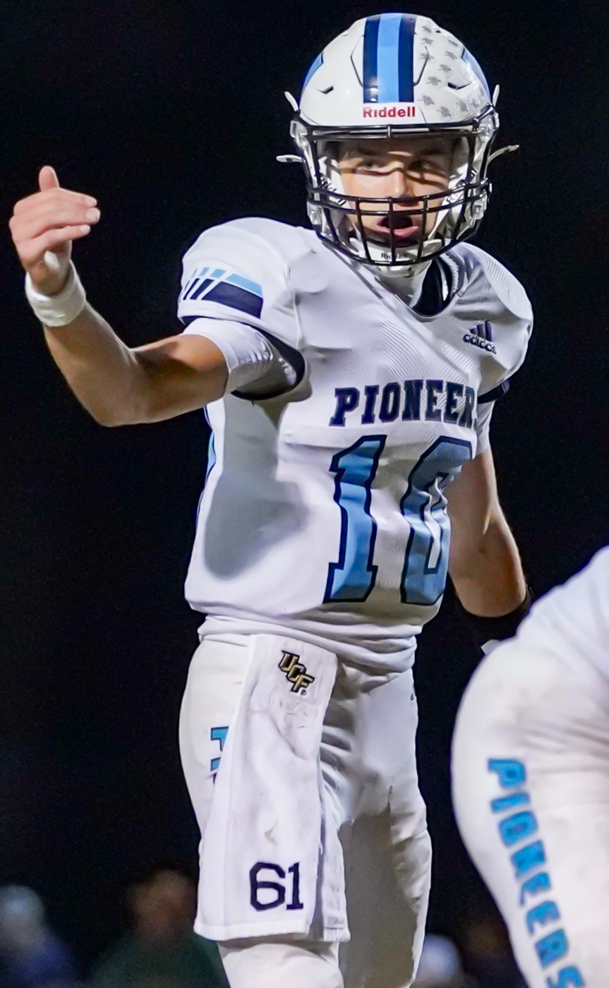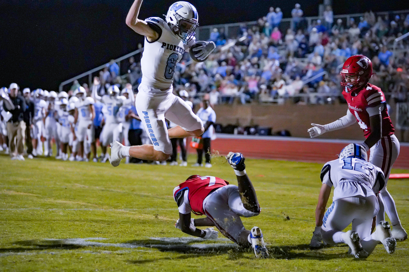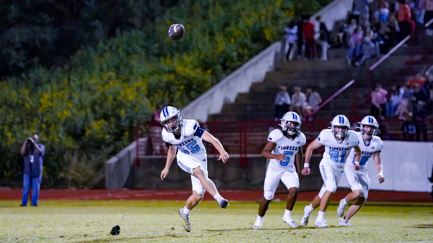 The Pioneer offensive coaching staff’s multiple formations and motion sets had Freedom frequently grasping for air. On defense, the Patriots were going backwards as often as not, compliments of Watauga defenders’ tackles for loss and smothering QB sacks.