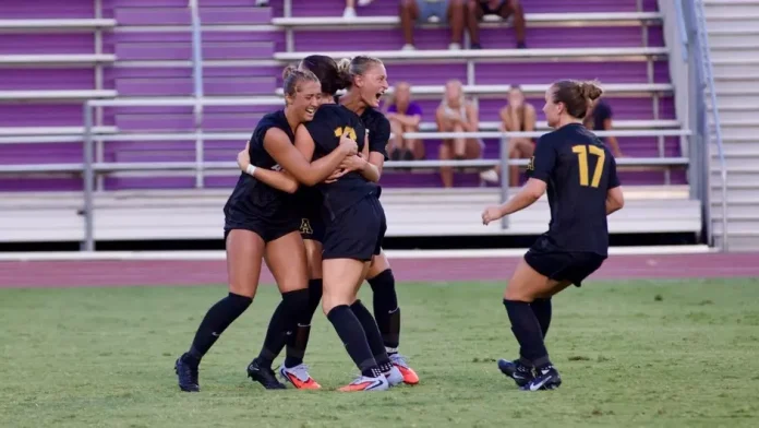 By Matt Present. CULLOWHEE, N.C. – With just over a minute to play, Ellie Garrison raced to a loose ball in the box, swung her left leg and drilled the game-winning goal to complete a brace and lift App State to a 3-2 road victory over Western Carolina to open the season.
