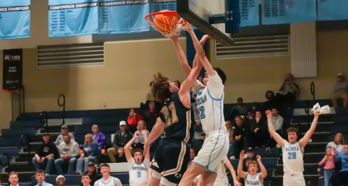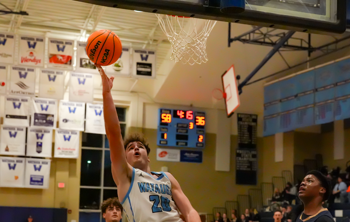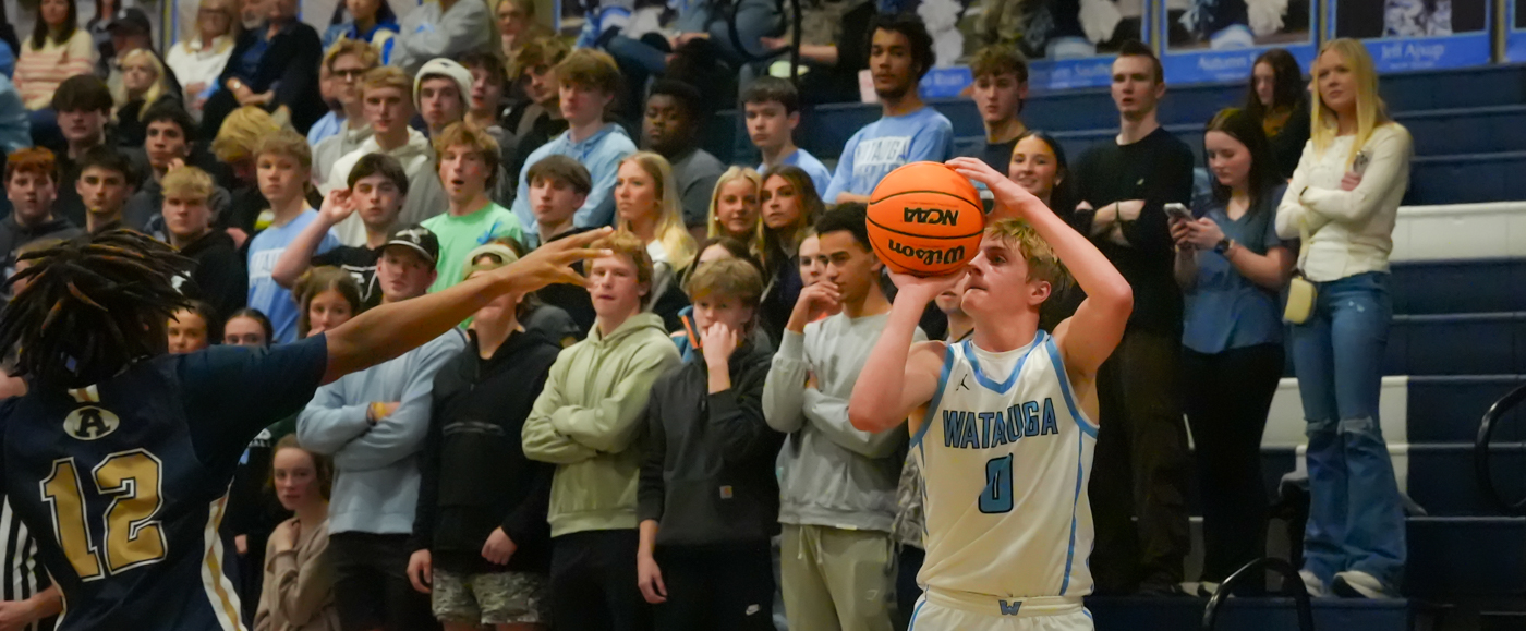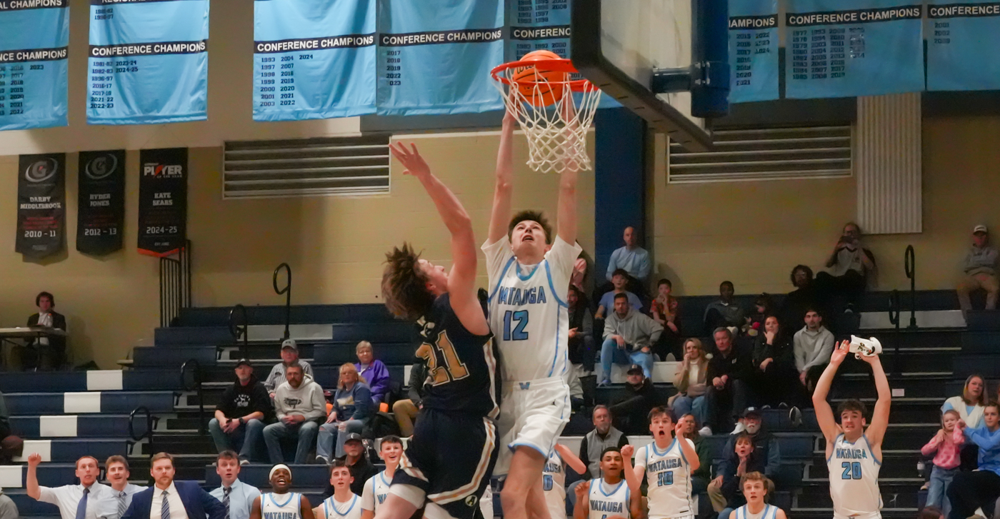 Head coach Bryson Payne’s up-tempo offense and disciplined defensive schemes were on full display against the Cougars, in front of a nearly full house in Lentz Eggers Gym. The Pioneers jumped out in front early and kept building on the lead, rarely letting the proverbial pedal off the metal. In the second half, ACHS made a run that would cut Watauga’s 20-point advantage in half, to 10, but that didn’t last long — and the lead kept expanding even when the Pioneers’ most rarely used bench players took the floor. If there was a statement moment, it might well have been when 6-4 junior forward Mason Tate finished off a fast break with a resounding dunk that left him hanging by his knuckles on the rim — as the Pioneer bench filled with the starters exploded in celebration for their young brother.