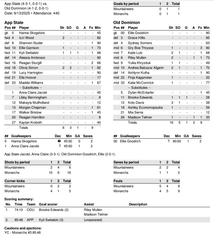 By Matt Present. NORFOLK, Va. — App State Soccer drew against Old Dominion, 1-1, to begin Sun Belt Conference play for the 2025 season.