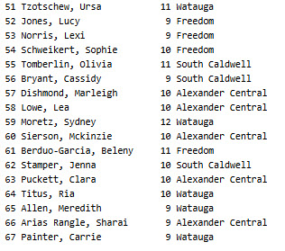 Sixty-seven (67) athletes competed in the women’s division race, including 37 from Watauga.