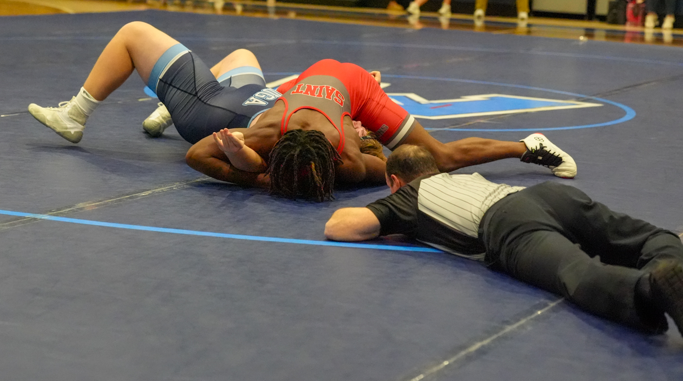 Arguably the brightest match of the evening for the Pioneers was Mikey Portante’s pin of Saint Stephens’ Davis Kerns at the 4:53 mark. Portante seemed in control for the better part of the match, punctuated by a resounding upending of Kerns in the late going of the 190 lb. weight class.