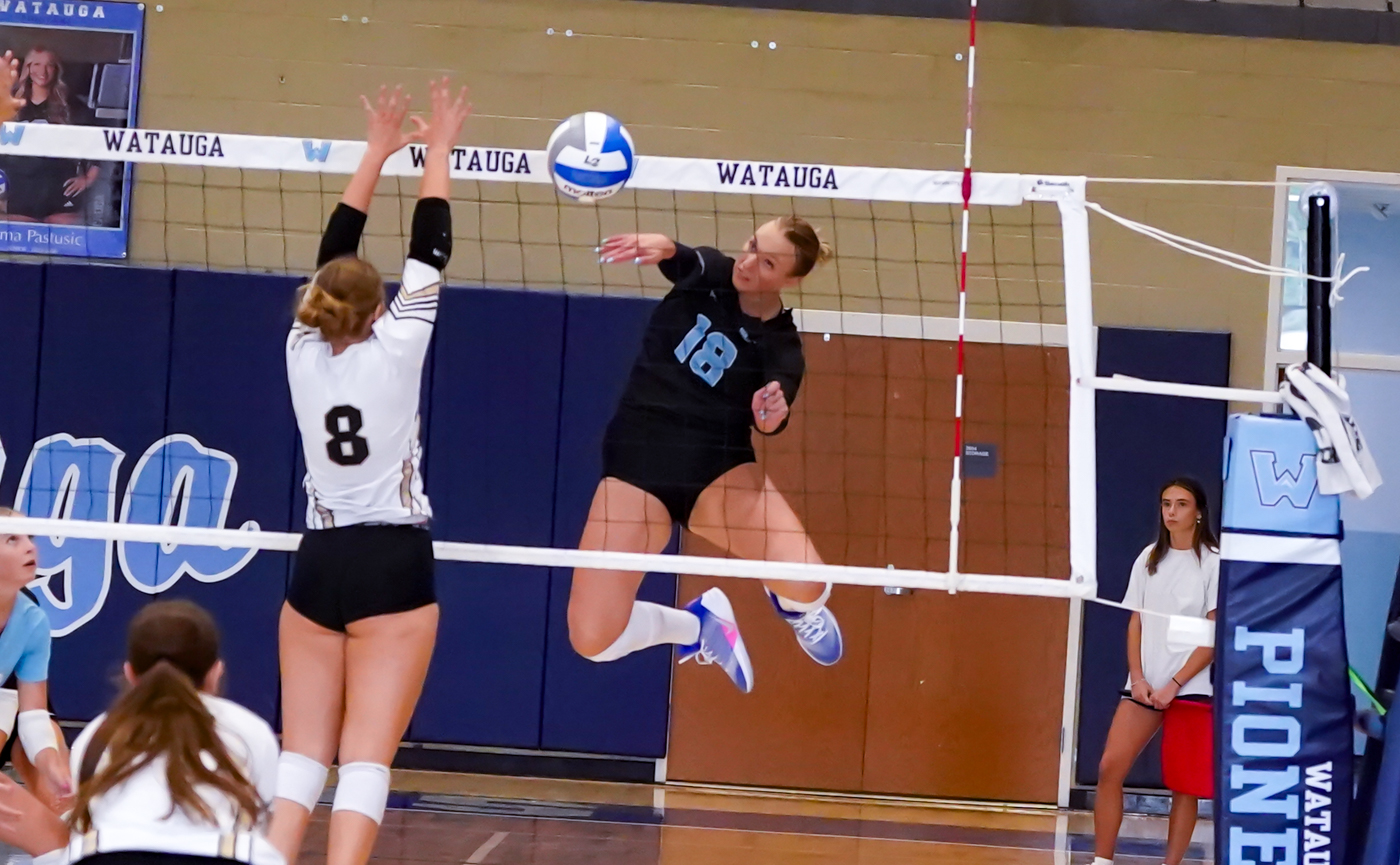 By David Rogers. BOONE, N.C. — Unity, said Watauga’s junior outside hitter Ashlyn Smith afterwards, was the key to the Pioneers’ two, 3-set sweeps of visiting North Iredell and Providence on Aug. 23, at Lentz Eggers Gym. The Boone volleyballers certainly seemed to be “clicking” against the Raiders in the morning tilt (25-12, 25-17, 25-12) and vs. the Panthers in the nightcap (25-11, 25-14, 25-19).