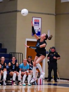 Head coach Kim Pryor said later, “Serving is one of the most underrated spots in volleyball. A lot of times you have players come into serve for your (middle blockers). Some of that is for serving but some of it, too, is to play tougher defense. I look down the bench and I have multiple people I could put in those roles, at any time. Graycie (Collins) and Ember (Honeycutt) are among those and they just step up and do the job.”