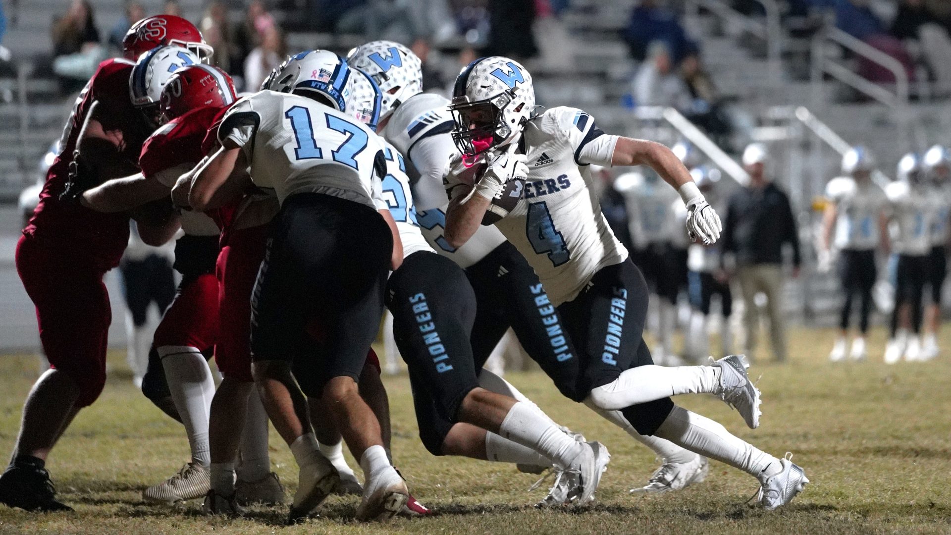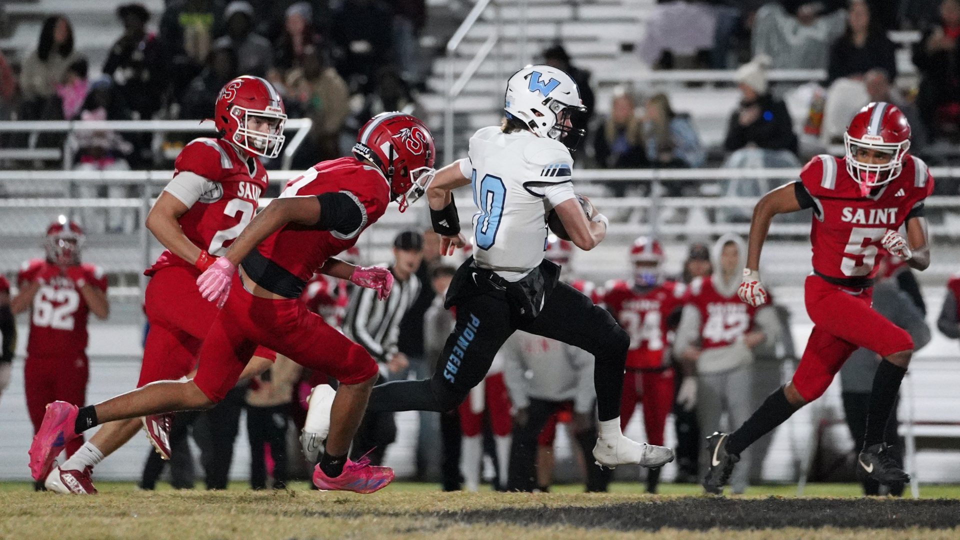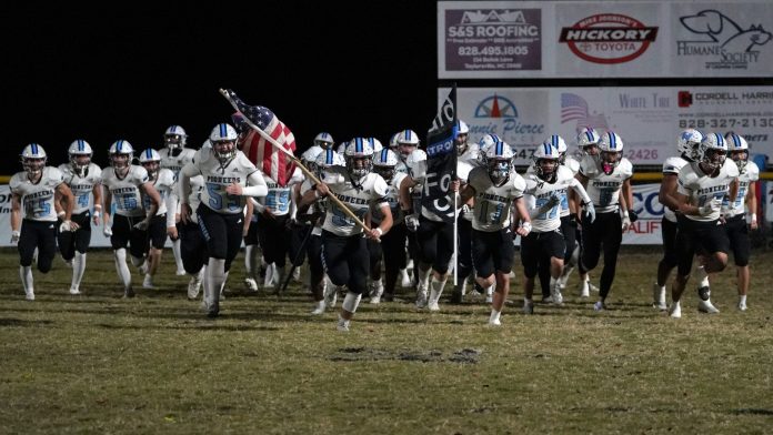 By David Rogers. HICKORY, N.C. — It wasn’t the prettiest or most artful Watauga gridiron performance, but it was just enough to secure the program’s eighth straight, undefeated Northwestern Conference championship. The Pioneers prevailed against a big, athletic and physical St. Stephens squad, 28-18.