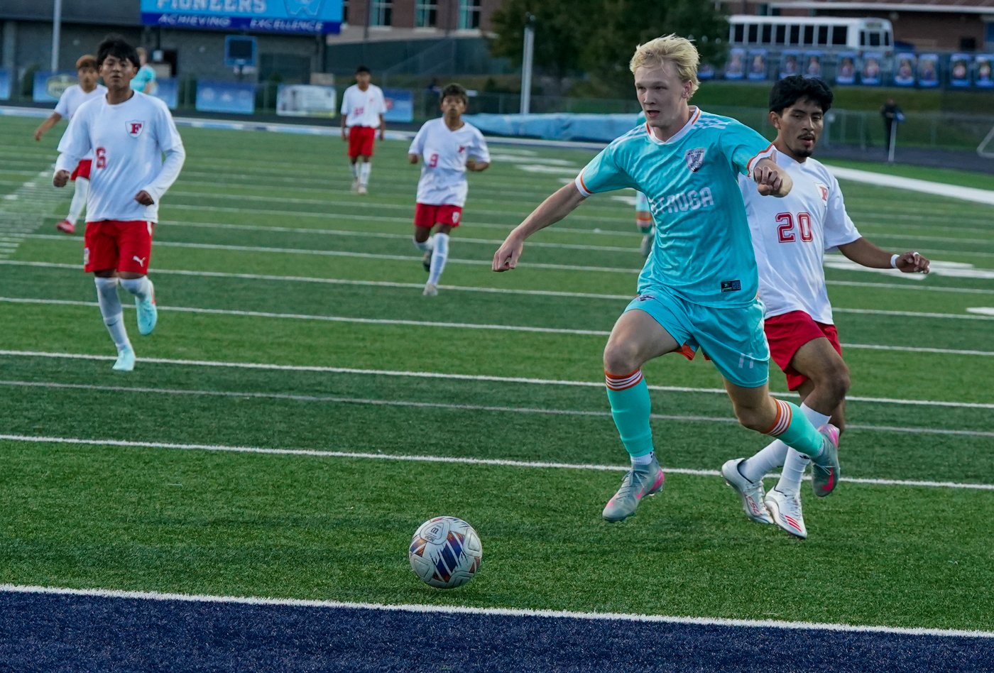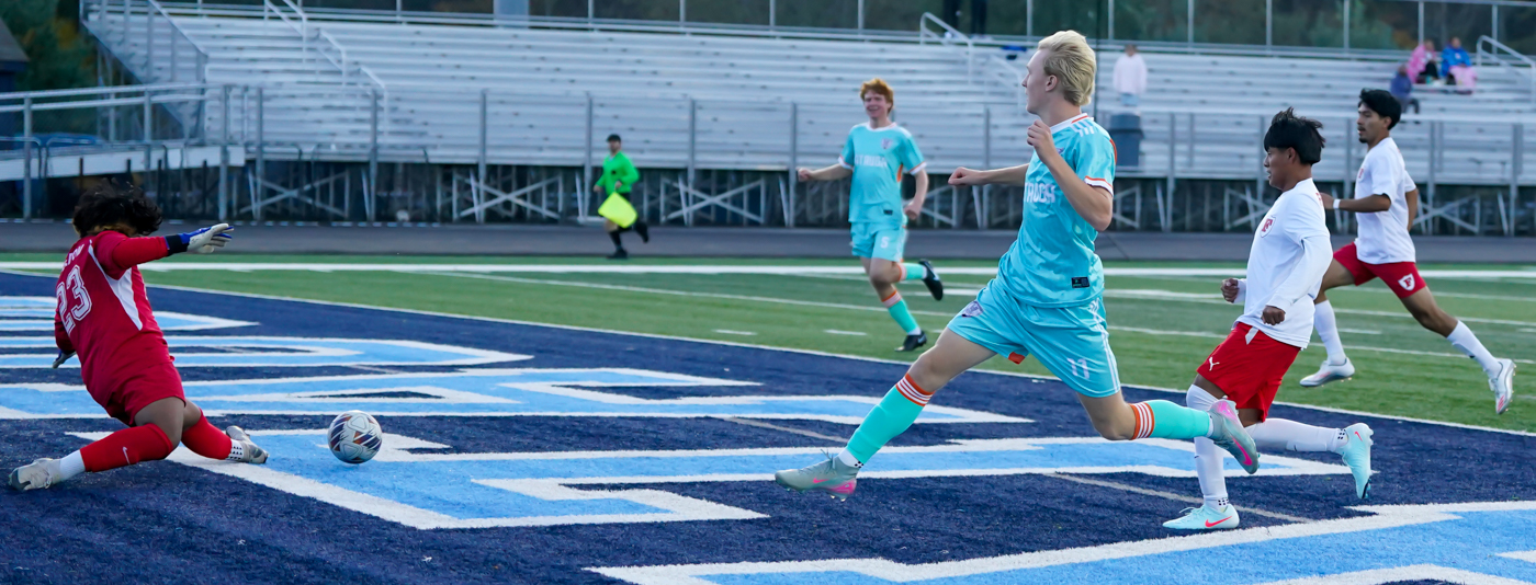 Senior striker Asher Hampton recorded a “hat trick” (three goals) and five other Pioneers got into the scoring romp with individual goals, including senior Shiris Kandel, senior Ben Myers, senior Lucas Hamilton, junior Evan Mawhinney and junior Trace Martinez.