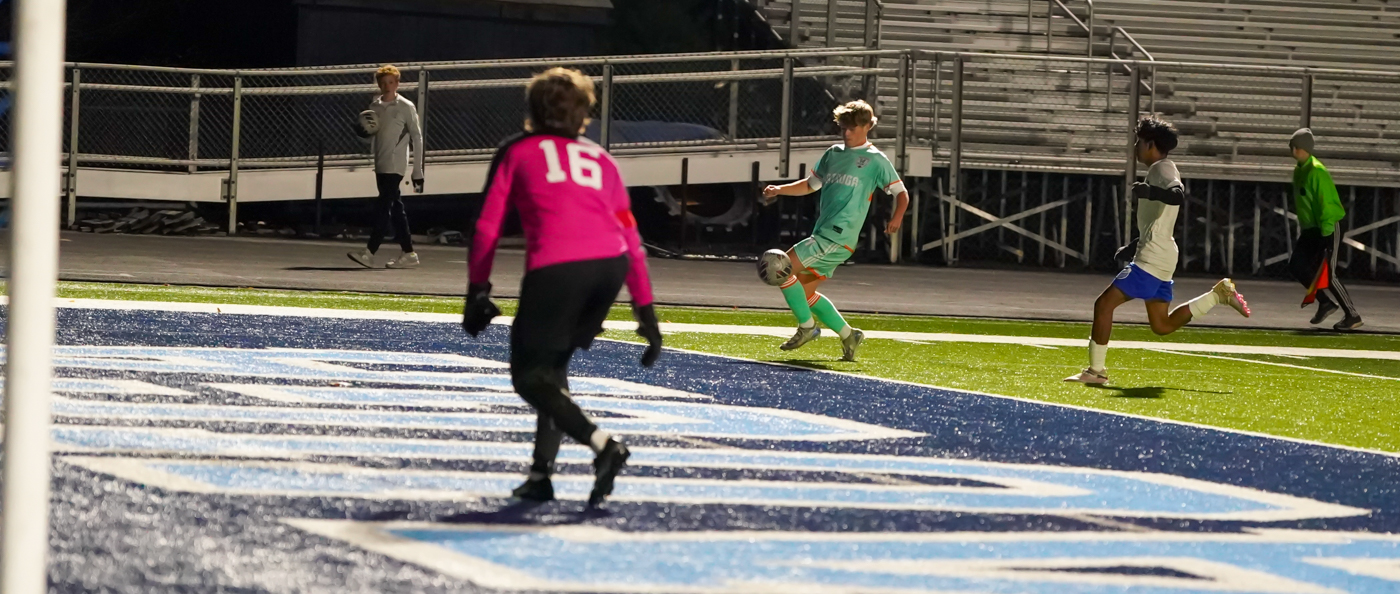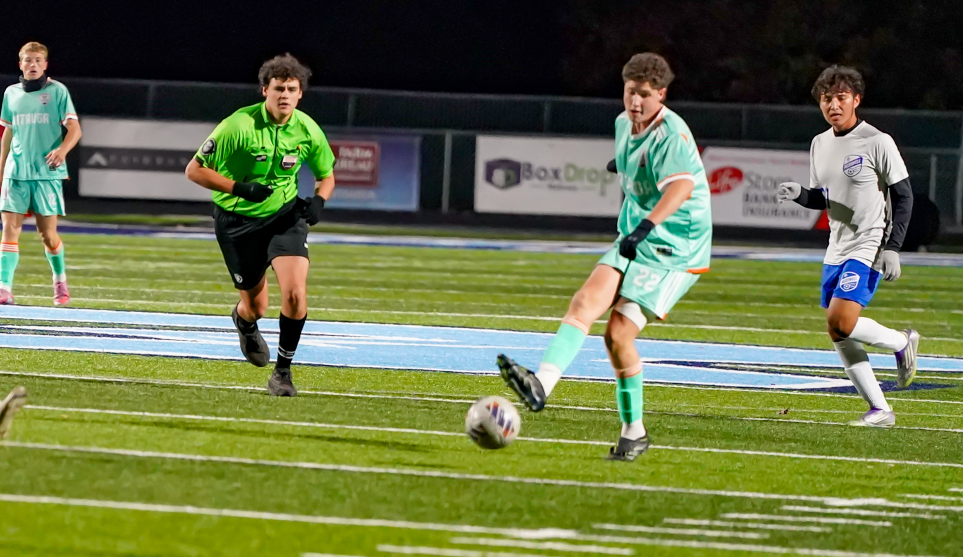 Given McDowell’s stacking the box, it was tough sledding for the Pioneers, offensively. At least two would-be goals were denied by a sideline official who didn’t seem to understand the offside rule, that if you are onside when a teammate kicks the ball as a pass, you can be beyond the last defender when you take possession of the ball.