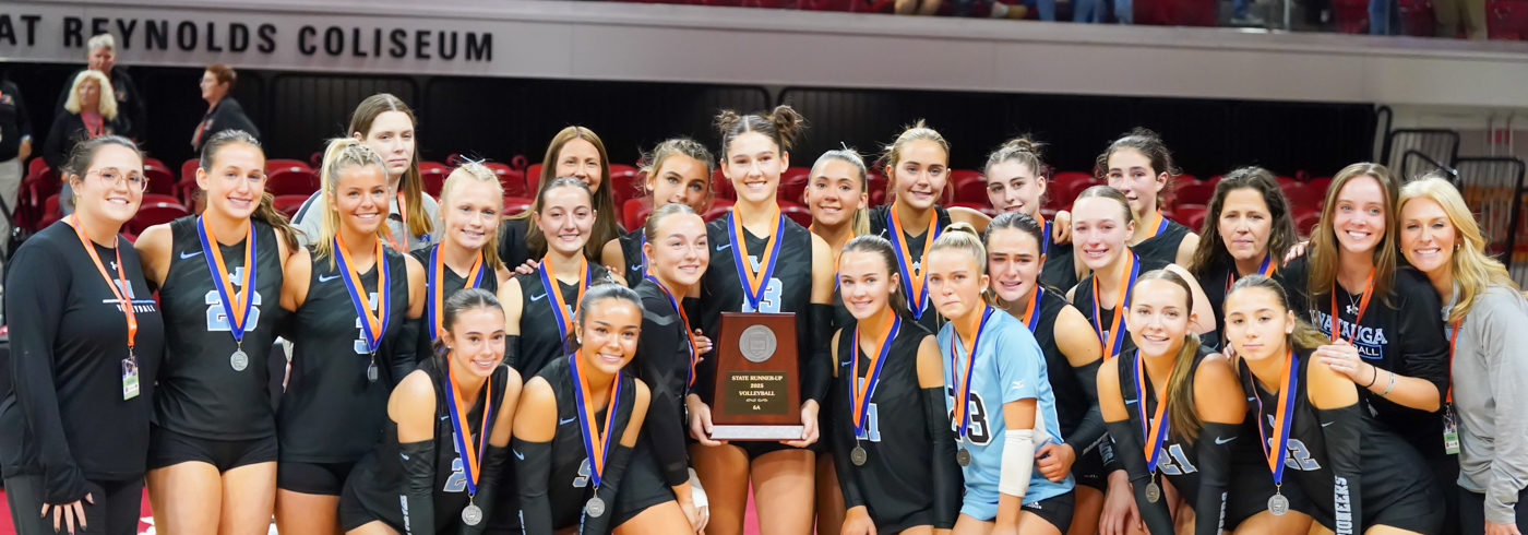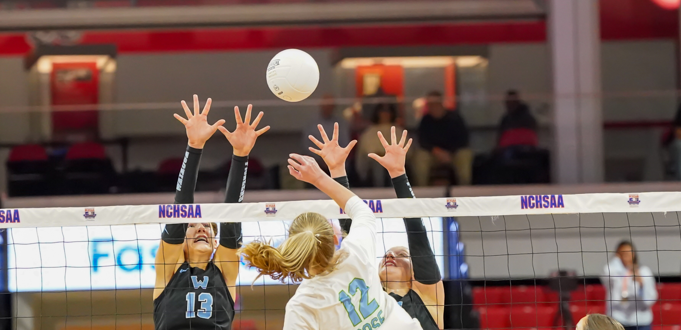 After Watauga women’s volleyball captured the first two “nail biter” sets on Nov. 1 at Reynolds Coliseum, J.H. Rose (Greenville, N.C.) stormed back to take the final three “cliffhanger” sets to be crowned the 2025 NCHSAA 6A Women’s Volleyball champions, 3-2 (26-28, 23-25, 25-21, 25-22, 15-7).
